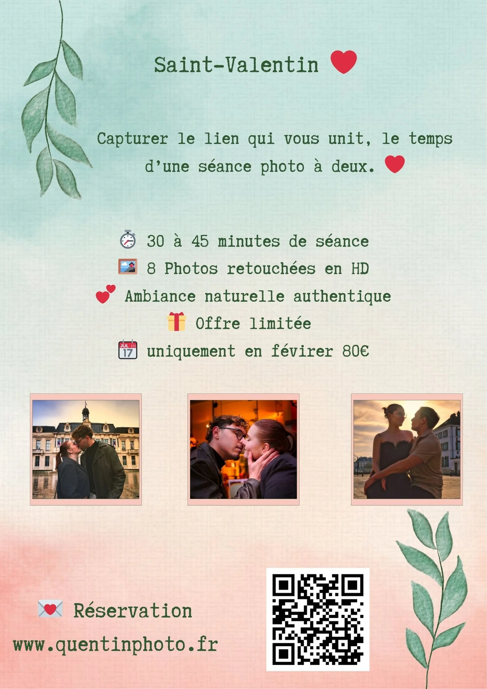 Formule parfaite pour les portraits en solo, duo, couple, famille, pour créer des souvenirs incroyable et vivant.